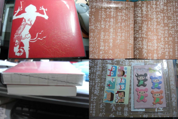 結果翻出了壓箱寶的山海經筆記本,但有鑑於它的裝訂很脆弱,我就把手邊有的L夾剪裁,然後再併以一些文具店買得的大證件套,黏貼在L夾上,作為塞放一些貼紙或是書籤之類的小物。雖然板上推薦了不少表格繪製的技巧,但最後我以土法煉鋼的Word表格繪圖為主,然後找尋一些DM加以黏貼空白處。