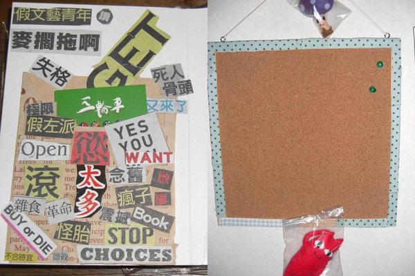 至於,右半邊則是在大創購入的軟木墊黑板,我利用布膠帶黏貼,反而意外有種日貨的感覺。(因為那些布膠帶,本來是要作包裝之用,可是剪了之後卻沒用武之處,拿來廢物利用,反而讓軟木墊有升級之感。)