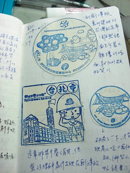 我發現最近台灣處處都有印章可以蓋,連劍潭站也有花博紀念章,可是那天我手邊沒有空白紙,剛好只有一張寫有資料的日曆紙,讓我順利留下印章的紀念!!!