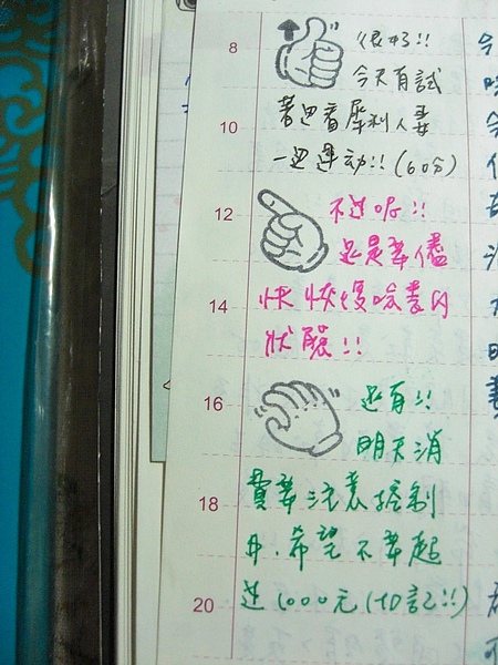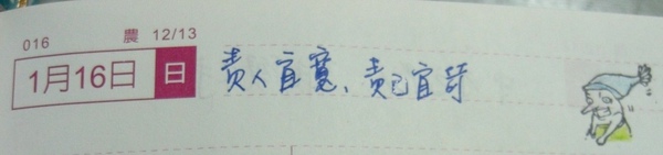 在時間的旁邊的空白,我會寫每日一句,不外乎是一些智慧之語或是菜根譚裡的句子...