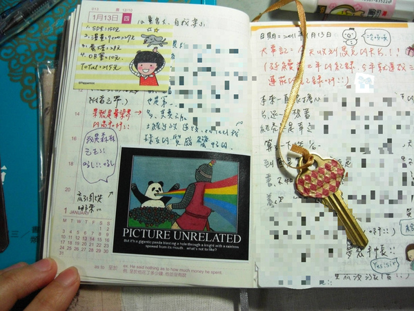 使用到現在,大概快一個月,我其實還蠻喜歡珠友簡約的設計,至少給我很多發揮的空間,不過今年我有避免使用立體的貼紙!!因為貼上去後,書就會像是傑克的豌豆,立馬似要長到天上去了...