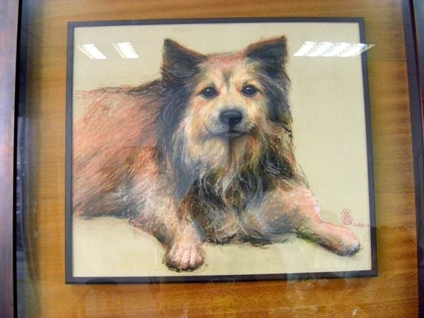店家說幾年前這隻狗年紀太大老死了,於是畫了張畫,讓隻狗能繼續陪著這家店