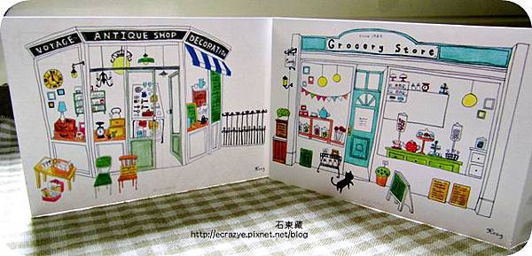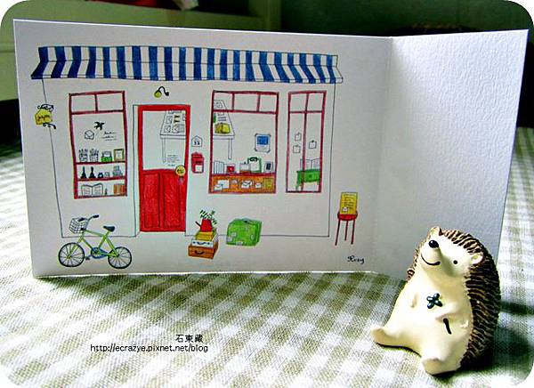 感覺很像是到了街區,立刻隨筆速寫畫上了一張卡片。