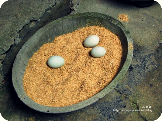 挑好的蛋放在<伊比工作室>所提供的籐籃