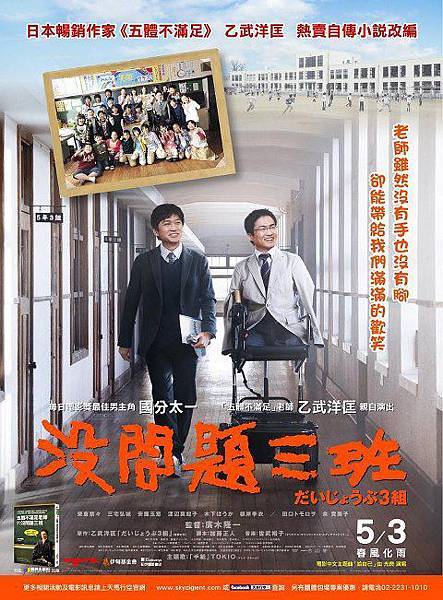 電影的氛圍是溫柔的,畫面也很乾淨,以教室後方的畫作顯示著季節的轉換,其實看這齣戲最大的重點,仍在於透過乙武洋匡去展現出他對於世界的觀察,以及怎麼調整自己迎向各種考驗,在戲中慎之介說出了自己也羨慕優作,而優作也說出唯有慎之介才具有改變一個團體氛圍的能力,對於慎之介能如此直白說出自己對於他人的傾慕,卻沒有自哀自憐,又或是憤怒,讓人不禁更加佩服,在<沒問題三班>裡,核心不在於催淚,而是一種力量的傳達,看完後會有一種心暖的感覺,有一種動力,一切都會沒問題的,大丈夫、大丈夫。