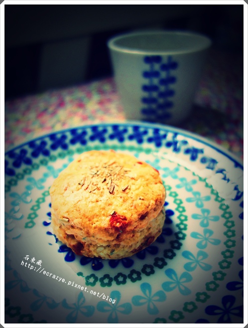 玻璃櫃裡內,用籐籃一一擺好各種司康,