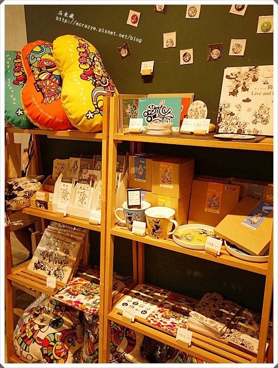商品種類多元,像是明信片、筆記本、馬克杯與抱枕,